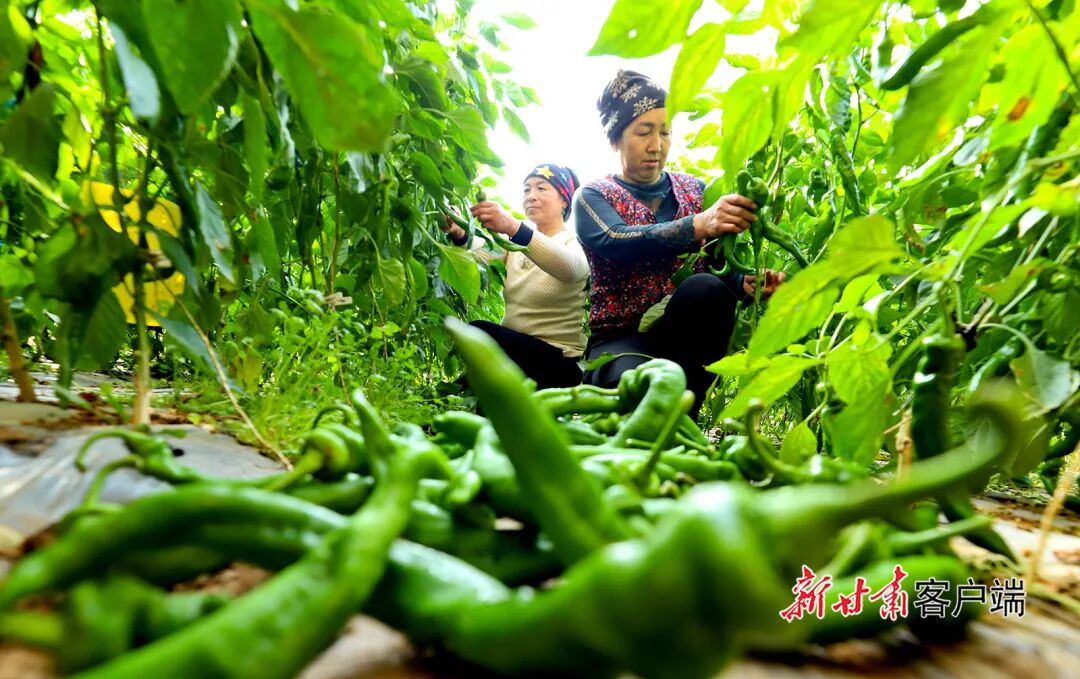 12月9日,临泽县倪家营镇汪家墩村设施农业产业园内,菜农们正在采摘蔬菜,准备运往市场销售。