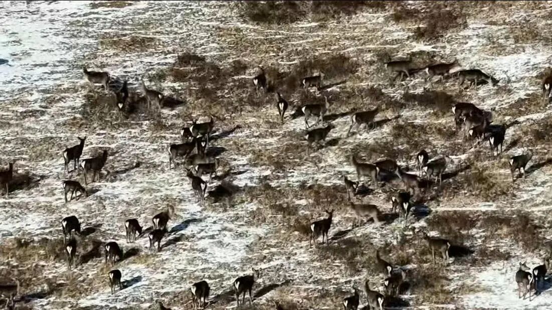 近日,甘肃祁连山国家级自然保护区管护中心寺大隆自然保护站工作人员在日常巡护中,利用无人机在同一区域拍摄到三群国家二级重点保护野生动物马鹿的活动画面,初步统计总数