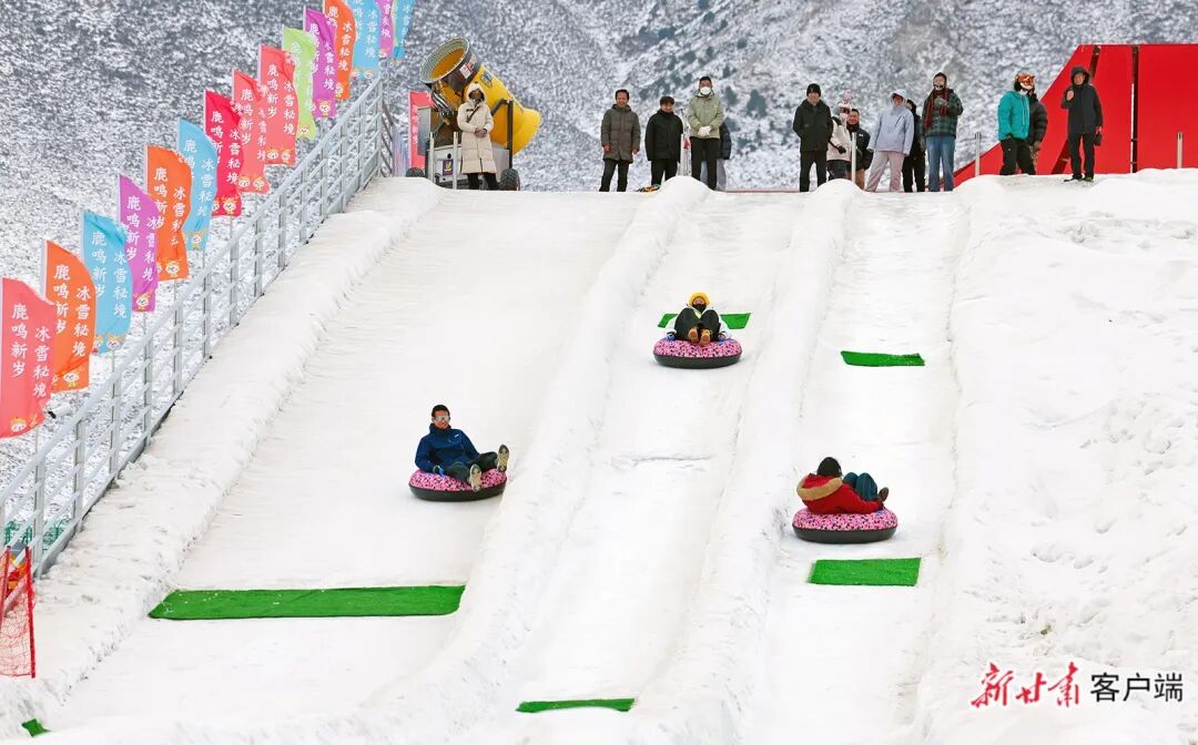 张掖肃南县,群山峡谷中,冰雪“热”力十足。