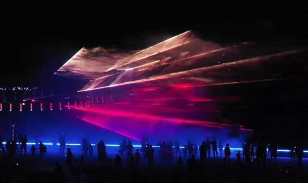 据了解,《甘州·夜宴》就是利用全息投影技术配合水幕打造的大型水上光影秀,其工程投影系统加感应互动系统打造了地面互动游乐大道、光影秋千、互动地踩灯、夜光小品等夜景构成了一场如梦如幻的水月世界,堪称是新一
