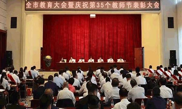 全市教育大会暨庆祝第35个教师节表彰大会召开杨维俊致贺信9月9日,全市教育大会暨庆祝第35个教师节表彰大会召开。市委书记杨维俊向大会发来贺信,市委副书记、市长谢又生在会前听取会议筹备情况并作出要求,市