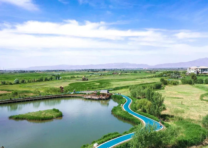 张掖国家湿地公园位于张掖城北、黑河东侧,规划总面积6.2万亩,2009年被国家林业局批复为国家湿地公园建设试点,2011年评定为国家AAAA级旅游景区,现已成为金张掖美丽的后花园和游客避暑度假的旅游胜