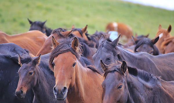 2019年8月26日,张掖山丹马场一场的牧马人正在赶着马群去饮水的往返途中,四蹄生风的骏马,奔腾在一望无际的原野上,长鬃飞扬,场面壮观。山丹马场位于河西走廊中部,祁连山冷龙岭北麓的大马营草原,地势平坦