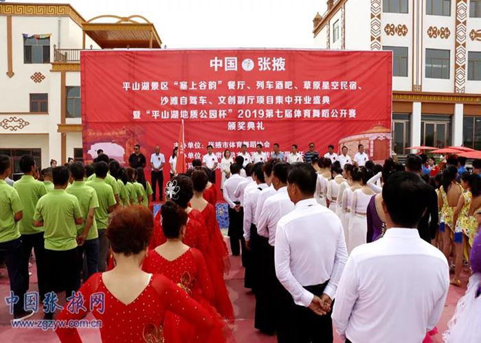 7月28日,张掖平山湖景区“塞上谷韵”餐厅、列车酒吧、草原星空民宿、沙滩自驾车、文创副厅项目集中开业仪式在平山湖景区举行,社会各界及游客近千人参加了活动。“塞上谷韵”餐厅,是平山湖景区为满足大型旅游专