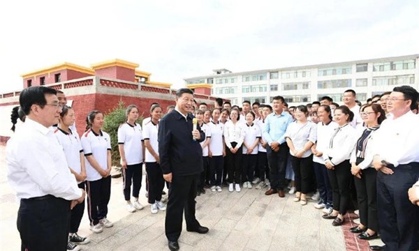 2019年8月19日至22日,中共中央总书记、国家主席、中央军委主席习近平在甘肃考察。这是20日下午,习近平在张掖市山丹培黎学校同师生亲切交流。新华社记者谢环驰摄在习近平总书记视察张掖一周年之际,张掖