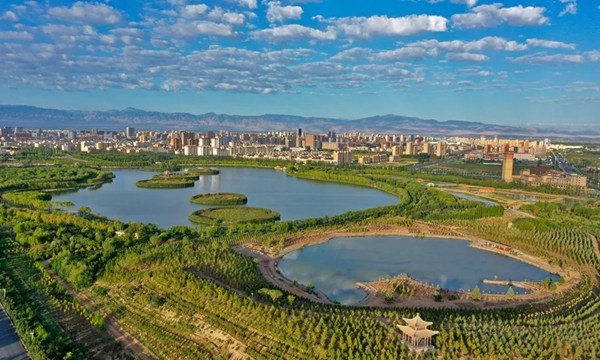 初秋,甘肃张掖润泉湖公园天高云淡、碧水涟漪,一幅迷人的塞上江南景致。张掖润泉湖公园位于张掖市区东北郊,占地面积1826亩,其中水域面积661亩,园内绿树成荫、花团锦簇,是我省第一座国家城市湿地公园。(