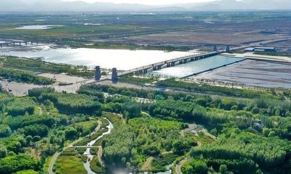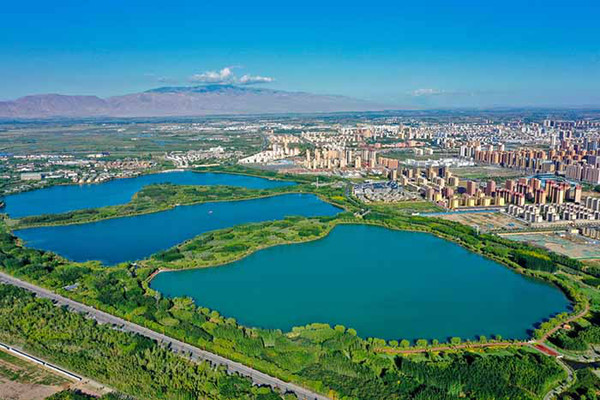 8月14日,初秋的张掖芦水湾生态景区绿树如茵、碧水蓝天,绿色浸润的湖光水色为城市增添了无尽风光。