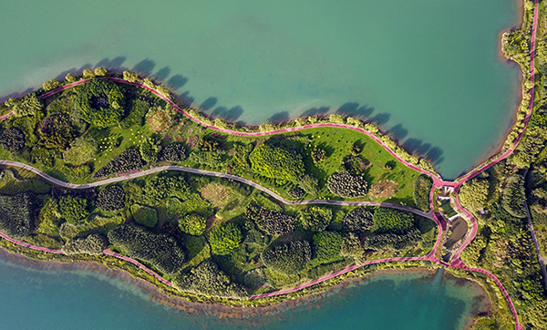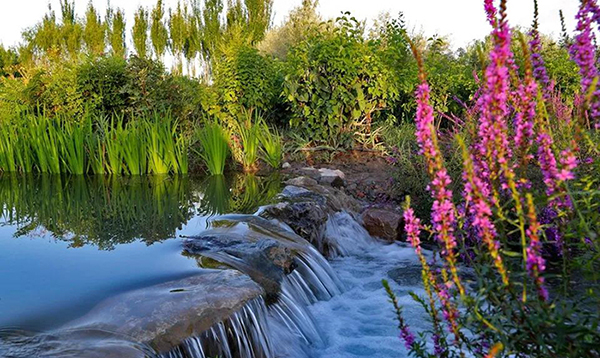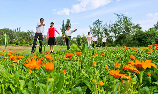 张掖国家湿地公园植物园内,花红柳绿、溪水潺潺,湿地小景随处可见,令人陶醉。(记者成林)