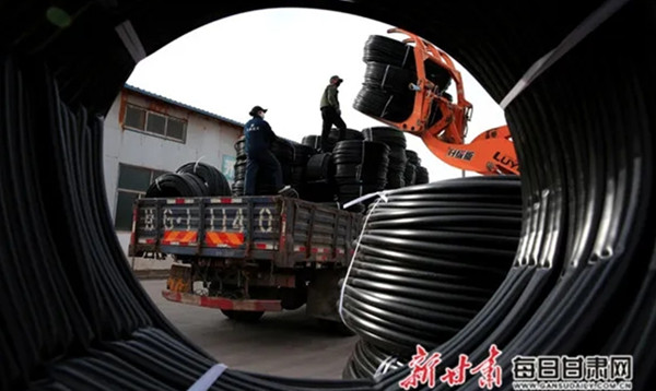 张掖远大节水公司,工人们正加班加点生产和装运管材杨永伟摄疫情防控不放松,抢抓农时早行动。3月7日,张掖市远大节水公司的管材生产车间和成品装运线上,工人们正加班加点进行生产和装运。张掖市远大节水公司所产