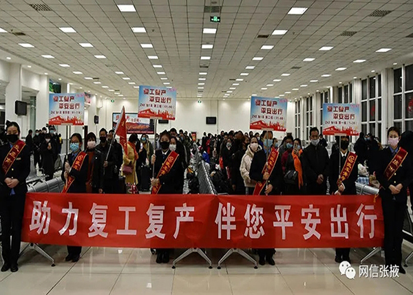 2020年2月25日,张掖市第一批118名赴江苏常州外出务工人员在张掖火车站集结,乘坐加挂专列外出务工,第二批也将于2月26日集体乘坐火车赴常州务工。