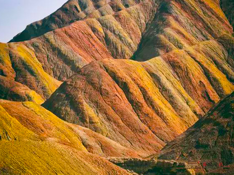 满目山峦,远看红霞纷飞,近看色彩斑斓,一座座山丘疏密相生。丝绸天路,历经千万年的地质变迁和气候变化,形成一条条层次分明的彩带,宛如绵延万里的丝绸古道,千年不曾中断......