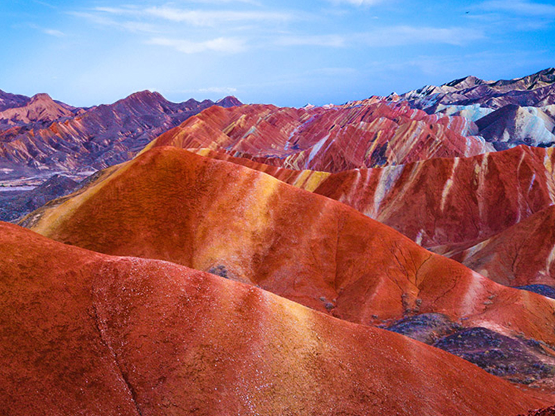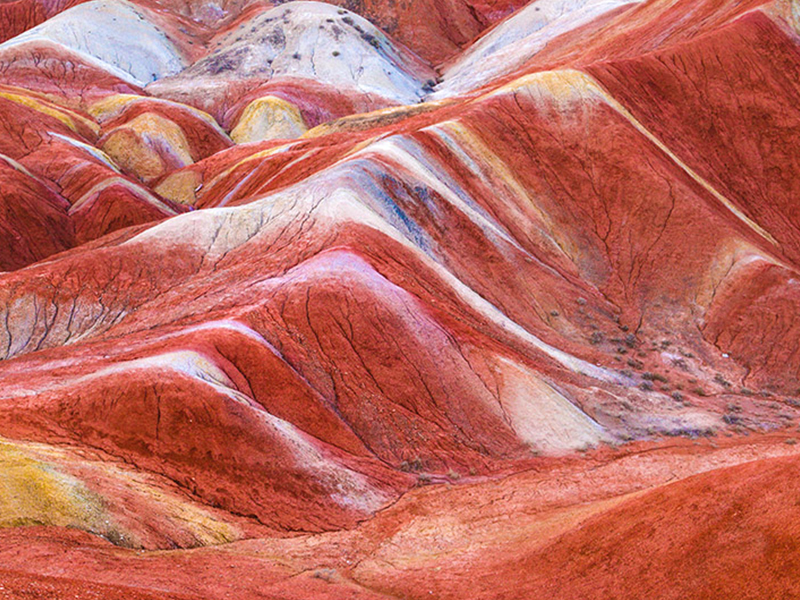 层叠起伏的丘陵被五彩的色带层层覆盖,阳光照耀下,灿若明霞。面对如此鬼斧神工的天地造化,人们纷纷惊叹,唯有上帝才能有此杰作。