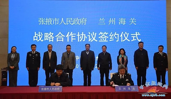 12月2日,张掖市与兰州海关签订战略合作协议。副省长张世珍,省政府副秘书长贾宁出席签约仪式,市委书记杨维俊出席并致辞,兰州海关关长李全和市委副书记、市长谢又生代表双方签约,省商务厅副厅长王颖玲,省税务
