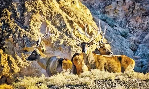 11月2日,记者在张掖七彩丹霞景区发现3只野生白唇鹿,它们的突然出现也让景区管理人员感到意外。当时,记者与景区管理人员乘车途经七彩敖河时,突然看到3只白唇鹿,连忙拿出相机拍照,随后下车想近距离拍摄,但