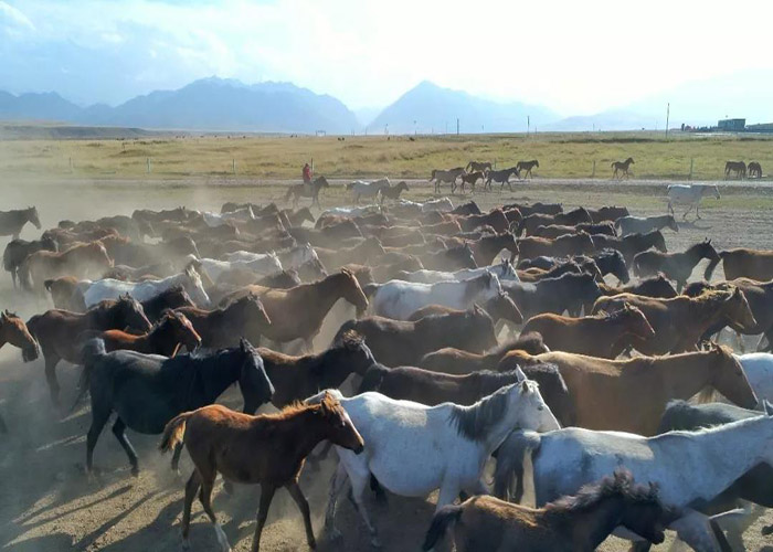 2019年10月2日,山丹马场成群的山丹马自由地奔驰在草场上,马蹄声碎,尘土飞扬,放马的汉子如流云来往穿梭其间,场面相当壮观。