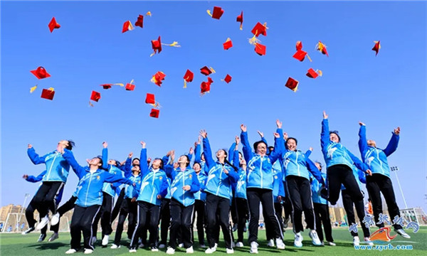 3月21日,张掖中学的学子们在成人礼上把“成人帽”抛向空中。3月21日,张掖中学为年满18岁的高中生举行主题为《成长、感恩、担当、责任》的成人礼,1600多名学生戴上“成人帽”与“成人徽章”,面对国旗