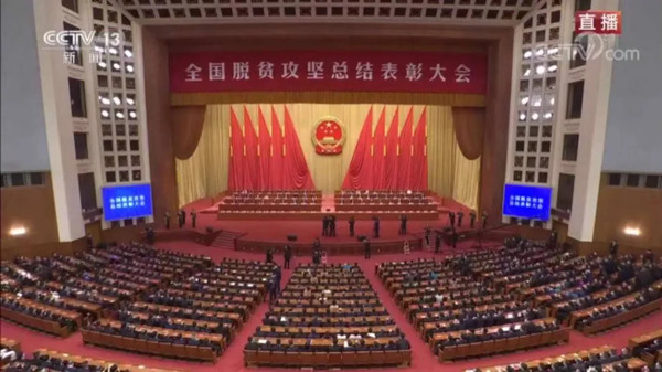 2月25日,全国脱贫攻坚总结表彰大会在北京人民大会堂隆重举行。中共中央总书记、国家主席、中央军委主席习近平向全国脱贫攻坚楷模荣誉称号获得者颁奖并发表重要讲话。习近平庄严宣告,经过全党全国各族人民共同努