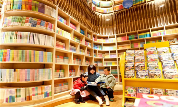 2021年2月12日,一位母亲带着孩子在张掖锦华书城读书。当日是大年初一,张掖众多市民带着孩子走进书店、图书馆,阅读图书和借阅书籍,在翰墨书香中过一个充实的文化年。(摄王将)2021年2月12日,一位