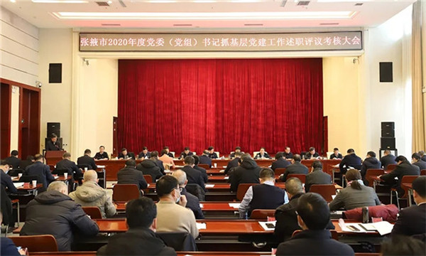 杨维俊在全市2020年度党委(党组)书记抓基层党建工作述职评议考核大会上强调突出政治建设强化党建引领为绿色转型高质量发展提供坚强组织保证1月14日,张掖市2020年度党委(党组)书记抓基层党建工作述职