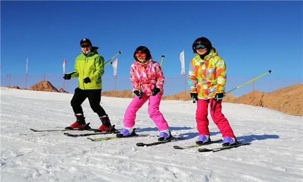 2021年1月17日,众多市民利用假日带着孩子来到张掖市山丹县佛山滑雪场,体验滑雪乐趣,感受冰雪运动魅力。(记者成林)