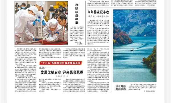 12月20日,人民日报头版专栏【“十三五”各地经济社会发展新亮点】以《张掖——发展戈壁农业迎来果菜飘香》为题报道了张掖戈壁农业发展成果。图片棚外雪花飞舞,棚内绿意盎然,碗口粗、近半米长的冬瓜密密麻麻。