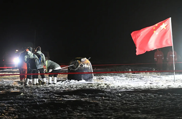 12月17日凌晨,嫦娥五号返回器携带月球样品,采用半弹道跳跃方式再入返回,在内蒙古四子王旗预定区域安全着陆。新华社记者任军川摄嫦娥五号返回器携带月球样品安全着陆中国探月工程“绕、落、回”三步走规划如期