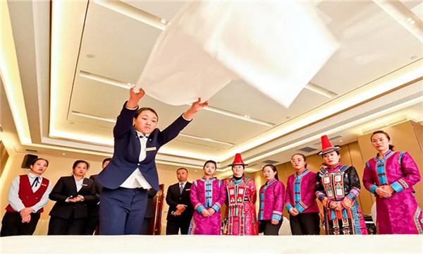 12月5日,网络上被称为“张掖铺床妹”的“甘肃省服务明星”刘慧媛在张掖旅游服务行业技能大赛上,正在进行客房卧具整理比赛。当日,张掖旅游服务行业技能大赛在张掖华辰大酒店举行,18个讲解员代表队、10个星