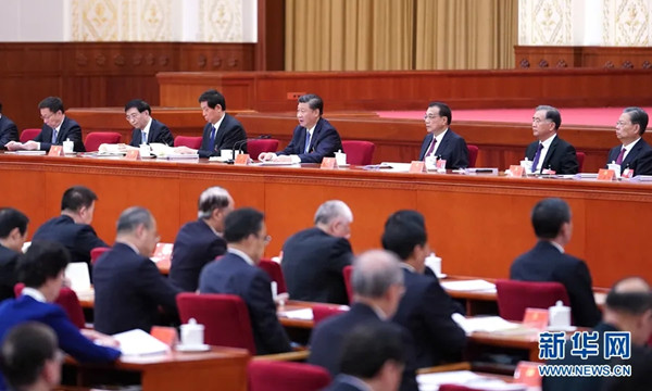 中国共产党第十九届中央委员会第五次全体会议,于2020年10月26日至29日在北京举行。这是习近平、李克强、栗战书、汪洋、王沪宁、赵乐际、韩正等在主席台上。新华社记者殷博古摄10月29日,中国共产党第