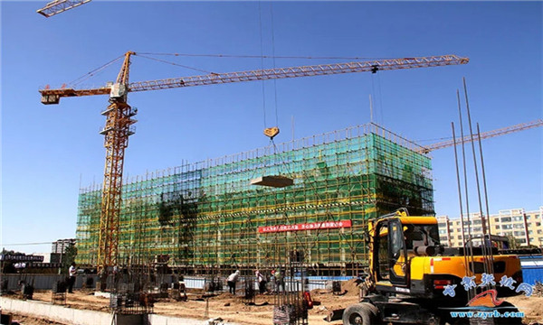 连日来,在山丹县丹城河畔城市棚户区项目施工现场,混凝土罐车、洒水车等各种施工车辆来回穿梭,工人们熟练地绑扎和焊接着钢筋,塔吊正不停的吊运着建筑材料,施工人员紧张有序地忙碌着,一栋栋在建的大楼在地块拔地