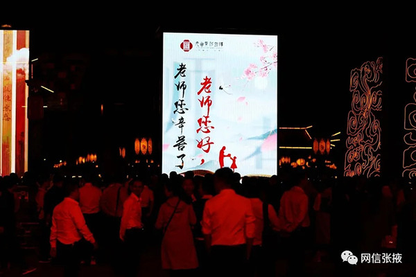 9月10日晚,在第36个教师节之际,张掖市甘州区在碱滩镇古城村屋兰古镇景区九曲黄河灯阵举行为教师亮灯活动。来自甘州区教师节受表彰的先进个人、全区中小学校(园)长及教师代表1200人,参观游览景区西市、