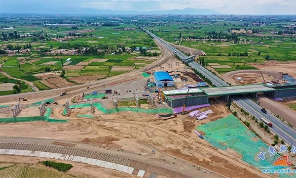 2020年9月7日,高台县黑泉镇北部戈壁上,占地6万亩的河西长征文化体验景区建设现场,建筑工人正在紧张有序加紧工程建设速度,保证十月电影《血战高台》入场拍摄。据悉,投资3.2亿元,占地6万亩的河西长征