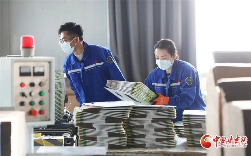 时下,在位于民乐工业园区的一家生产车间内,工人们正紧张有序地进行包装盒装配、成型作业。