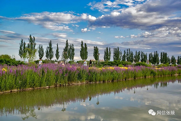 盛夏时节,张掖国家湿地公园繁花似锦、景色怡人,成为市民和游客休闲、游玩的好去处。(记者 成林)