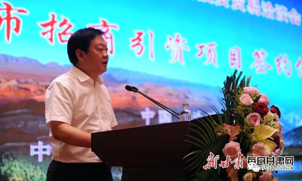 张掖市委书记杨维俊在签约仪式上致辞签约项目64项、总投资197.55亿元,涵盖大数据、新能源、新材料、智能制造、生态环保、现代农业、文化旅游、交通物流等众多领域……第26届兰洽会期间,张掖市招商引资项