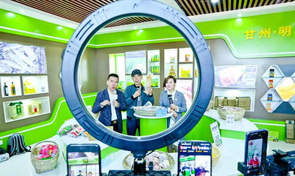 5月1日,甘州区明永镇电商体验中心两位网红正在向北京、天津、上海、广东、福建等地的粉丝和消费者推广介绍绿色有机富硒小米。连日来,200多名网红主播活跃在张掖五县一区的乡镇电商体验中心、蔬菜大棚和田间地