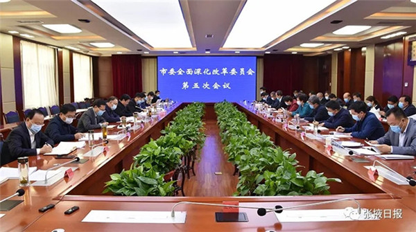 4月28日,市委书记、市委全面深化改革委员会主任杨维俊主持召开市委全面深化改革委员会第五次会议,传达学习中央、省委全面深化改革委员会有关会议精神,研究审议《中共张掖市