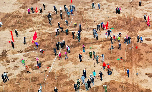 4月10日,张掖市数万名党政机关和企事业单位干部职工、部队官兵及社会各界群众来到甘州区黑河生态新城生态修复胡杨林营造基地植树现场,积极投入春季义务植树活动中。大家挥锹铲土、挖坑、栽苗、填土、踩实、浇水