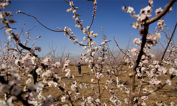 近日,随着气温的上升,张掖市甘州区金满园农业科技公司的1600亩杏园内杏花绽放,花香四溢,在夕阳的映照下充满诗情画意。(陈礼摄)编辑:刘淑萍