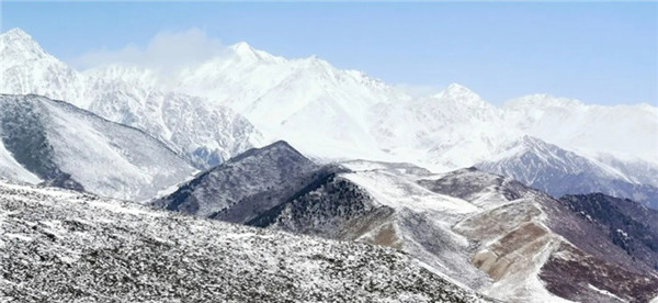 近日,祁连山北麓的肃南裕固族自治县迎来了一场春雪,雪后的肃南草原空气清新,景色如画,展现了别样的北国之春。( 武雪峰 )