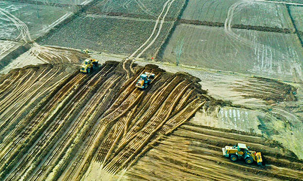 2020年3月16日,张掖甘州区甘浚镇高标准农田建设项目工地上,挖掘机、推土机机声轰鸣,一片忙碌景象,3.6万亩高标准农田建设项目复工复产后正在紧张有序的推进中。据悉,张掖把高标准农田建设作为促进农业