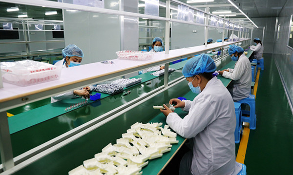 3月12日,张掖经济技术开发区智能制造产业园的张掖市海晟世纪科技有限公司电子测温枪生产线上,员工们紧张有序组装“张掖康”牌电子测温枪。该公司电子测温枪生产线是甘肃省首条同类型电子测温枪生产线,取得国家