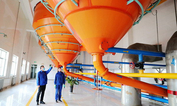 3月11日,张掖经济技术开发区一家啤酒原料生产企业员工查看设备运行情况。张掖经开区在