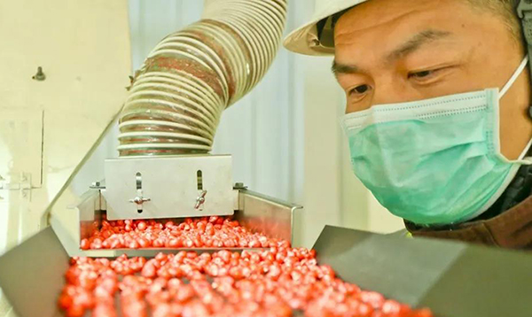 2020年3月6日,张掖天宇种业公司玉米制种全自动化生产线上,工作人员正在玉米制种精选机前查看优质玉米良种的精选生产情况。时下,正值春耕生产旺季,张掖在严格落实疫情防控各项措施,保障人民群众生命安全和