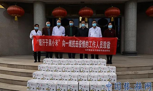 3月5日下午,张掖市慈善协会与爱心企业山丹县金谷子种植专业合作社慰问我市疫情防控一线医护人员,先后为张掖市第二人民医院和河西学院附属张掖人民医院共捐赠500盒价值2万元的黑小米,表达了对疫情防控一线医