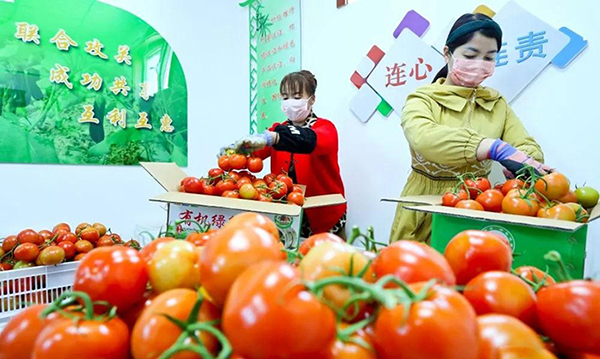 2020年2月8日,张掖市甘州区党寨镇陈寨村的蔬菜种植户正在将当天清晨采摘的西红柿进行包装后紧急发往湖北。连日来,张掖为了让湖北人民吃上最新鲜的蔬菜,在严格疫情防控的同时,紧抓春季蔬菜生产、千方百计增