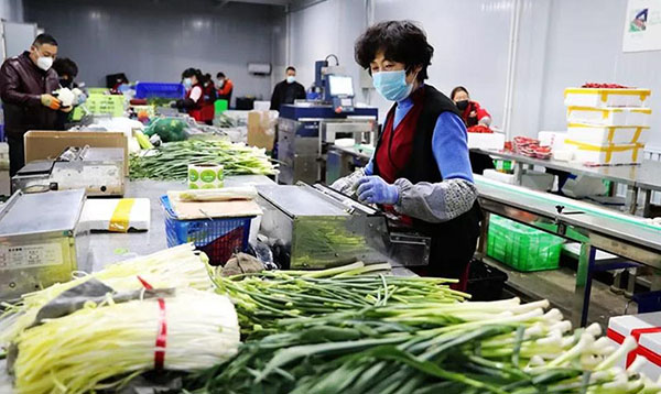 1月30日,新乐连锁超市有限公司配送中心蔬菜分拣车间里,员工们紧张忙碌分拣蔬菜、打包配送。新乐连锁超市有限公司是张掖市最大的连锁超市销售企业,其位于张掖经济技术开发区的配送中心是河西地区面积最大、储存