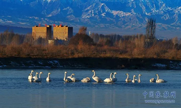 近日,地处祁连山下的张掖市高台县黑河湿地的河道内,一百多只大天鹅悠然自得,嬉戏觅食。雪山、城市、湿地、候鸟构成一幅水城相融,人鸟共存,和谐共生的自然画卷。随着祁连山生态环境持续改善和黑河湿地保护力度的