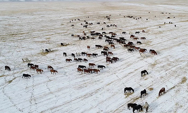初冬时节,位于祁连山下张掖市肃南裕固族自治县康乐镇的康乐草原被一场大雪妆点的银装素裹,分外妖娆。不远处的巍峨祁连山脉被皑皑白雪层层包裹,苍松翠柏,矗立其间,一派山舞银蛇,原驰蜡象的壮美北国风光。近年来